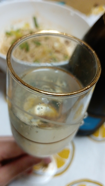 青リンゴっぽい、可愛い優しいツツツあり。口当たりも優しい泡。 ラオマーパンミエンってインスタント麺を肴にしたら少し苦味出て楽しい泡&ユーチューブタイム♪