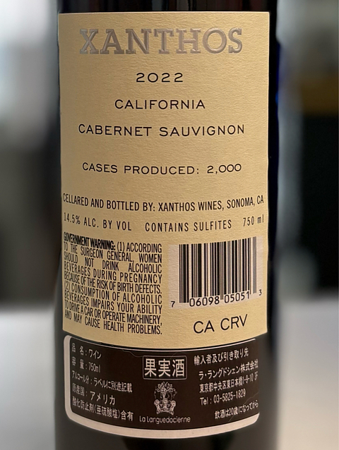 カリフォルニア産カベルネ・ソービニョン品種の赤ワイン。税込み約¥3k- 〜リピートにつき前のメモより〜 深紅のエッジにかろうじてサーモンピンクからルビーにグラデーションが見分けらる。ブラックチェリー、プルーン。カシスやハーブなどの複雑さはないけどバニラの甘い香りが僅かにあるような気がする。ザントス(XANTOS)は、黒いエチケット(ラベル)のジンファンデルも美味かったけど、カベルネSもさりげに旨い。サラブレッドの走りに合わせて自身の体重を消し込み馬身を追い上げるジョッキー・マッチョ。力強い走りから想像し得ない。女性騎手の馬に向ける眼差しの優しいこと。 ◆カベルネ・ソーヴィニヨン 【Cabernet Sauvignon】 17世紀にフランス南西部でカベルネ・フランとソーヴィニヨン・ブランが自然交配して生まれた。2種類のブドウの名前を組み合わせて、「カベルネ・ソーヴィニヨン」と名付けられた。味の調整を目的としてボルドーでは伝統的にアッサンブラージュ(ブレンド)することで上質なワインを生み出している。 カシスやブルーベリーなどの黒系果実の濃厚な果実味が特徴で、アメリカやチリなどニューワールドで造られるワインは黒系果実に加えチョコレートのような風味を伴う。ヒマラヤ杉、ハーブ、スミレなどの香りが華やかに沸き立ち、熟成すると真紅からレンガ色に近い色合いに変化、ドライフルーツやシガーなどの複雑なブーケを持ち、同じ品種とは思えないような劇的な変化を愉しめるのも魅力のひとつ。 牛肉や仔羊肉など、肉質がしっかりと感じられる赤身肉を使った料理との相性が抜群。調理法はグリルやローストがおすすめ。 鶏のから揚げや煮込みハンバーグなどの家庭料理には、カジュアルなデイリーワインが合う。ローストビーフやビーフシチューなどには高めのワインが良く合う。