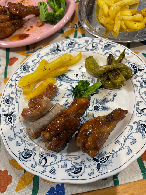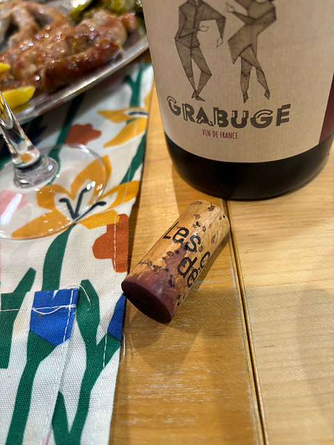『No.1347 名前を裏切るか、その通りなのか』 【グラビュージュ/2020年】 アレクサンドル・ダレ/フランス・プロヴァンス ・シラー 60% ・グルナッシュ 40% 合わせた夕飯 ・手羽元の炒め煮 ・羊のサルシッチャとフライドポテト ・蒸しブロッコリーとしし唐の炒め物 抜栓し、グラスに注ぐ…思ったより濃いめではないのかな?柔らかなガーネット。ふんわりとブルーベリーやプラム、プルーンのようなぐじゅっとした果実感と果実香。時折、腐葉土のニュアンスや、八角、胡椒のようなスパイスの要素も そして一口…お、あぁ、思ったよりは濃さは感じないかな。香りの通りの果実の味わいはわりとしっかり目でどこか甘やか。スパイスや腐葉土のニュアンスは飲むとより感じるかも。このグラビュージュという名前は、バラバラなとか不均等、騒ぐこと…だそうで。今も感じだと名前通りバラツキみたいなのは感じるかな。 シラーが60%ってことで、羊のサルシッチャを焼いてもらったのだが、これが実に相性が良くて、ついつい飲み進めてしまいがち。焼き肉のたれで煮詰めながら作る(妻が)手羽元の炒め煮とも寄り添い合うような相性の良さ。時間が経過していくと、味わいに落ち着きのようなものが見られ、より美味しくいただける。 ワイン自体も美味しいんだけど、このエチケットが絶妙なんだよなぁ。ごちそうさまでした。