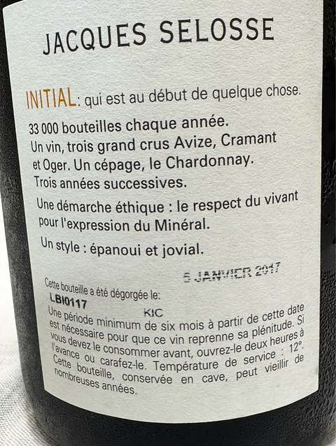 | ワイン | Jacques Selosse Brut Initial (Initiale) | ||||||||||||||||||||