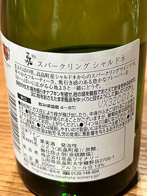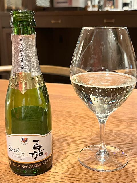 日本の、シャルドネのスパークリング。マスカットやライチの香り、スッキリとしたワイン。