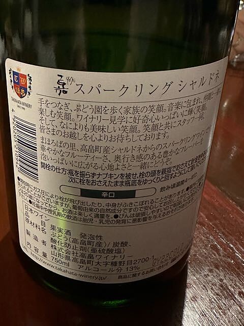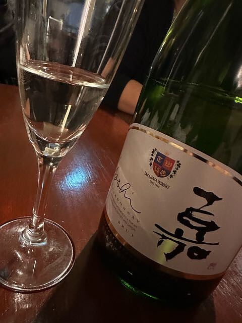 休暇の初日は仲間内の忘年会 飲み放題で飲んだくれた後に日本ワインのビストロで 山形のシャルドネのスパークリング、酵母を感じる味わい この後も1、2本飲んだはずだけど写真がない