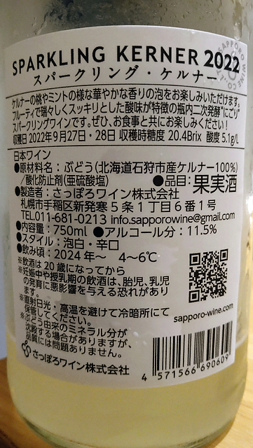 さっぽろワイン株式会社 Sparkling Kerner 2021