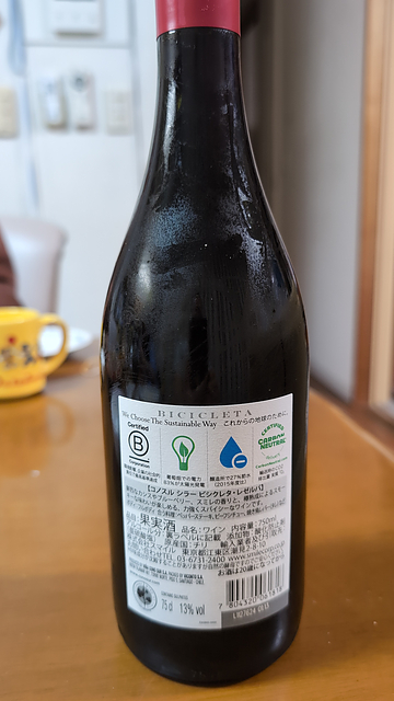 間違いないコノスルワイン、シラーです。安旨ワインです。冷しゃぶ、トマトチーズに合わせています!