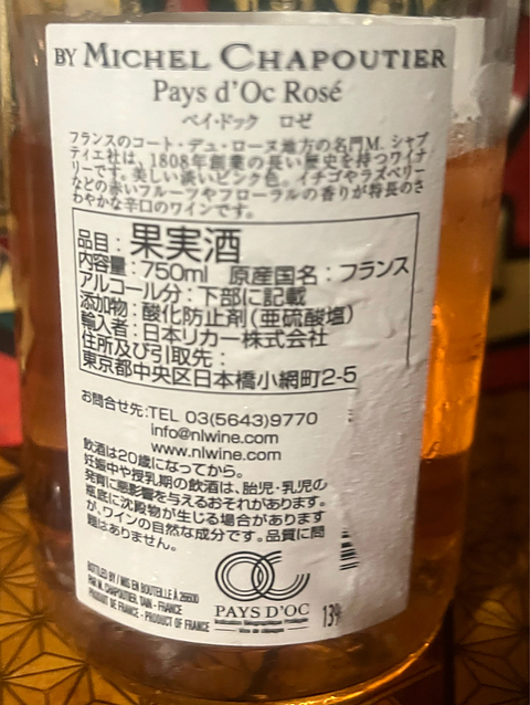 M. Chapoutier Pays d'Oc Rosé M. シャプティエ ペイ・ドック ロゼ 近所のスーパーの値引きワイン (・_・; 普通に料理にあいます。 モウカザメのソテー オクラのスープ 中華鍋でつくる?いい加減なチリビーンズ