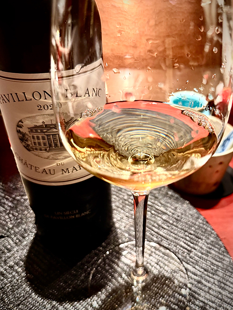 虎ノ門の天ぷら屋さんにお持ち込み。 パヴィヨン・ブラン・デュ・シャトー・マルゴー2020を頂きました。 綺麗なゴールデン・イエロー色。 レモンなどのシトラスにオークとカシス・バッズなどのハーブが相まり、とても品の良いアロマ。 ミディアム・ボディの美しい凝縮感の果実味から乳酸系の酸味を感じ、エンドにオークのフレーバーからハーブ香る余韻と素晴らしい酒質のパヴィヨン・ブラン。複雑味が重なり合っていますが、芯の通ったピュアな果実味のまとまっていて、若いながらの磨きのかかった果実味を堪能出来ました。 熟成後の姿もみてみたいものです。