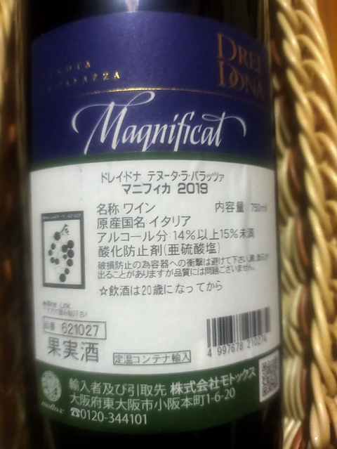 ドレイ・ドナのマニフィカ ロマーニャ地方の秀逸なサンジョヴェーゼの生産者であるドレイ・ドナ。この生産者が生み出すちょっと珍しい赤ワインが、このカベルネ・ソーヴィニヨン100%のマニフィカ。この州でカベルネ・ソーヴィニヨン100%のワインはちょっと珍しく、このワイナリーのラインナップの中では最も高価なボトルになります。 濃いガーネット。カシス、コーヒー。 完熟したカベルネ・ソーヴィニヨン。どっしりとした口当たりで、やや濃厚。深みのあるカシスの味わいで、カベルネ単体という旧世界では難しい品種構成ながら、硬すぎず分かりやすすぎず、よく出来たワインと思います。まあ、飲み疲れするタイプではありますが。