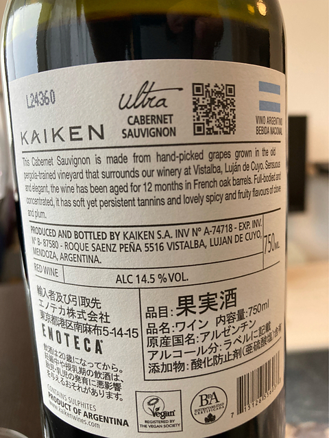 ☆3.7(コスパ込み) 私の中で、新世界カベソーの筆頭格で、ワイン単体でも十分楽しめます── 折角のお休みですが、バケツをひっくり返した様な大雨に打たれ身体が冷えたので、赤ワインと洒落込みます。 大好きなカイケンのカベルネ・ソーヴィニヨンです。 テクニカルデータは最下部に載せていますが、21vtで、ALC14.5%です。 ◇香りは、カシス、黒ベリー&チェリー、黒胡椒、杉系の緑の抜け感、ほんのり葉巻き ◇口に含むと、写真の大ぶりのボルドーグラスに相応しい凝縮感。 ◇そして、カベルネに期待したい酸&タンニンの質感と量。 エキスパート試験対策で出てきた新世界カベルネより、断然美味しく感じます。 このため、前回より☆UP 本家チリのモンテス以上に、カイケン好きです^ ^ 値上がりしましたが、まだコスパ◎と思います。 メンドーサのワインは、基本どれも美味しいもんですね。 エキスパート合格の登録料2万円超、クレカでこっそり払いましたが、まだ家族に打ち明けられないまま・・・笑 ★以下、カイケン公式HPより★ ◇畑 ヴィスタルバ、ルハン・デ・クージョ - 位置と標高:メンドーサ市の南20km、海抜1,050m。 - 気候:年間降水量250mm。気温差が大きく、湿度が低く、日照量が多い。 - 土壌:アンデス山脈の水による浸食で形成された沖積土。深さ1mの岩塊を含む、深い砂質ローム。透水性に優れた、緩やかな構造。 - ワインスタイル:甘味のあるタンニンが特徴の、複雑で深みのあるワイン ◇醸造 3月と4月に手摘みで収穫。ワイナリーに到着したブドウは、自社畑から手作業で選別されます。発酵前のマセレーションは、タンク内で10℃(50°F)で7日間行われます。発酵は、厳選された天然酵母を用いてコンクリート製のタンクで26℃(79°F)で7日間行われます。発酵後のマセレーションは20日間行われます。天然のマロラクティック発酵はコンクリート製のタンクで行われます。ワインの45%は、フランス産の樽(新樽、2度目使用樽、3度目使用樽)で12ヶ月熟成され、その後、瓶詰めで6ヶ月間貯蔵された後、リリースされます。 ◇21vtの特徴 メンドーサでは、春は例年に比べて非常に乾燥していましたが、1月と2月は過去2年間よりもさらに多い、かなりの降雨量となりました。 春の気温は例年とほぼ同じでしたが、1月と2月は過去2年間よりも涼しかったため、収穫がわずかに遅れ、よりゆっくりとしたペースで進みました。 その結果、自然な酸味が豊かで表現力豊かな白ワインと、凝縮感のある赤ワインが生まれました。2021年の収穫は、よりエレガントでフレッシュなワインとなるでしょう。 ★番外★ スイスのアッペンチェラーというハードチーズと合わせましたが、60点ぐらい。 合わなくもないけど、敢えて合わせる必要もない印象です。