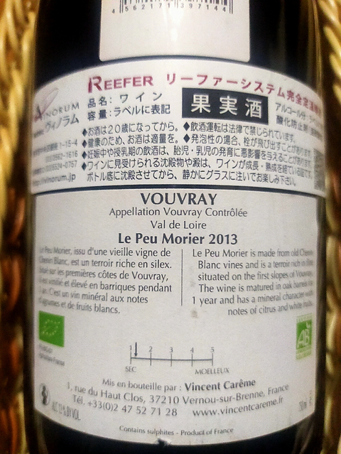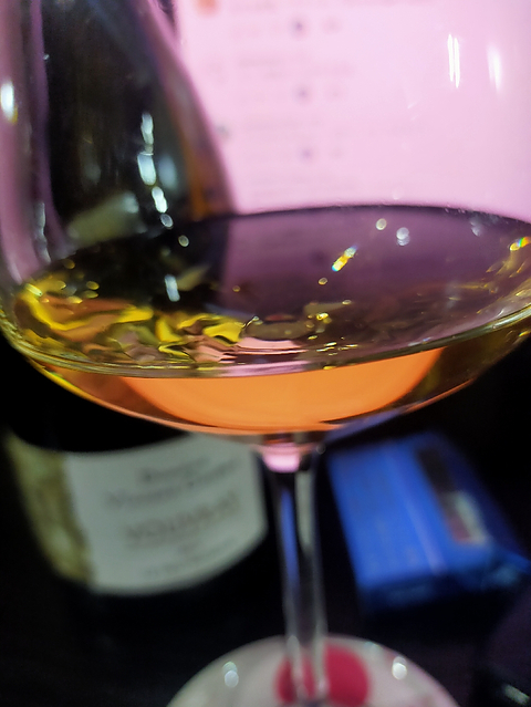 ドメーヌ・ヴァンサン・カレムのヴーヴレ・セック・ル・ポー・モリエ 店舗で、というより恐らくインポーターの在庫で8年は熟成してたっぽいワイン。まあヴーヴレそんなに売れるワインではないですよね。本来より安く買えたと思いますが、今見たら更に安くなってました。許すまじ。 やや金色がかった輝くイエロー。蜂蜜、マスカット、黄色い花、バナナ。 熟成を感じる素晴らしい香り。シュナン・ブランらしく主張しすぎない味わいとはいえ、金柑や蜂蜜、ベッコウ飴を思わせる熟成の風味は明確。酸味はミネラルを兼ねており、甘口の熟成ヴーヴレを感じ取れる瞬間も。やや過熟成な嫌いはあるものの、久々に熟成白を飲めて満足でした。