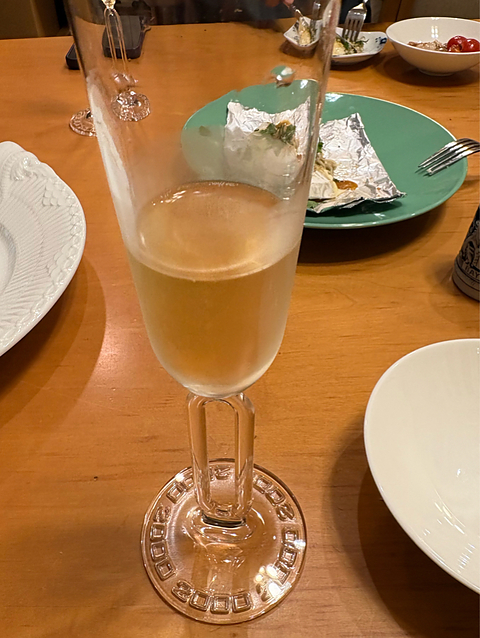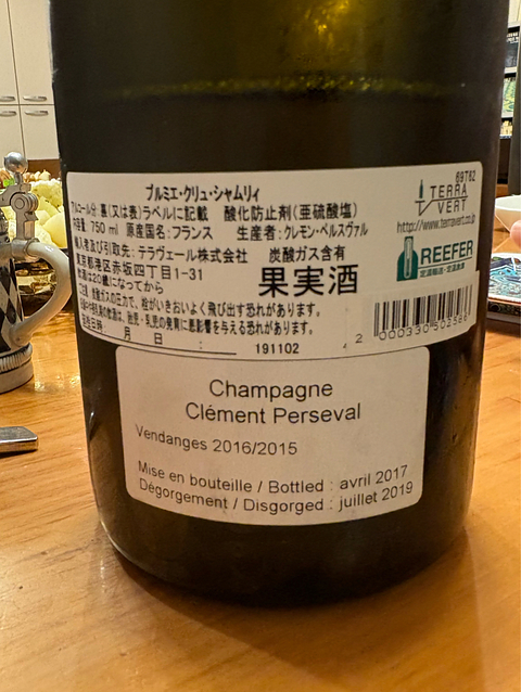 2015/2016 クレモン・ペルスヴァル シャムリィ 1er クリュ エクストラ・ブリュット モンターニュ・ド・ランス シャンパーニュ/フランス 日曜日のワイン・その1 娘氏の彼氏が、急遽来宅することになり、前日から、おおわらわで接待の準備に取り掛かりました。 もう何度も会っていて、ご飯もその都度ご一緒していますが、わが家に来ていただくのは初めてなので、ちょっと緊張しますね(๑˃̵ᴗ˂̵) お料理は、とりあえず「切って出すだけ」とか、「鍋に放り込んで煮るだけ」みたいな方向性でなんとか手当てし、ワインはわが家にある、室温放置か冷蔵庫ストックの野良在庫から…。 乾杯の泡は、やはりシャンパーニュでしょ! ということで、しばし悩んでクレモン・ペルスヴァルのシャムリィ 1erクリュ エクストラ・ブリュットにしました。 つくり手のクレモン・ペルスヴァルは、10年ぐらい前からちらほら見かけるようになったレコルタン・マニピュランです。 ジャック・セロスのもとで修行したというキャリアと、小規模ドメーヌのためフランスでも入手困難という希少性、そして何よりその品質の高さから、日本でも注目を集めていましたが、最近、市場でほとんど見かけなくなりました。 というのも、現在、ヨーロッパ以外への輸出を止めているとのことで、そりゃ見当たらないわけです…。 このシャムリィ 1erクリュ エクストラ・ブリュットは、シャルドネ 85%、ピノ・ノワール 8%、ムニエ 7%からなる、彼らのスタンダード・キュヴェに当たります。 使用されるぶどうは2年に跨るマルチヴィンテージ、複数の畑から収穫された、マルチセパージュでによるワインがアサンブラージュされたもの。 しかし、将来的に目指しているのは、「ブルゴーニュのようにテロワールを明確にしたシャンパーニュ」だそうで、「単一品種・単一区画・単一年でシャンパーニュを造っていきたい」という希望があるそうです。 つまり、「理想の未来」に至る旅路の途次にあるワインということです。 青年らしい「夢」や「未来」を語ったり、それを聞いたりする際にいただくワインとして、とても相応しいワインではないでしょうか? さて、実際にいただいたワインは、非常にクリアなプラチナゴールドの色味で、泡立ちは繊細なタッチのきめ細かなタイプですが、素晴らしい勢いと持続性あります✨ 外観からは、ひと目でわかる、あからさまな上質さを感じます(笑) 香りを取りにいくと、とても品の良い新鮮な柑橘系や、瑞々しい青リンゴのような果実香と、カリカリッとグラスをスクラッチするような、硬いミネラルのニュアンスをまとっているのを感じます。 バックラベルによれば、ぶどうの収穫は2015年と2016年で、ティラージュ(瓶詰)は2017年4月、デゴルジュマン(澱引)は2019年の7月だそうです。 瓶熟の期間はそこそこあるわけですが、実際にいただいてみると、かなりフレッシュな状態。 口に含むと、とてもドライな味わいながら、しなやかで強靭な酸による骨組みの中に芳醇で奥行きのある果実味が収まっており、絶妙なバランスが素晴らしいですね♪ 泡のきめ細かさによる口当たりのまろやかさや、「ほどよい」としか形容しようのない熟成感もまろび出てきて、飲み進めれば飲み進めるほど、全体が「丸い」印象に。 余韻は長く、味わいの変化も愛でながら、優雅なひとときを愉しませてもらいました✨✨ 理想を追い求めるワインづくりが、ここからどう変わっていくのか? いろいろな意味で、変化を見守りたい…そんなつくり手さんなんですが、日本への輸出を再開してくれないですかね?