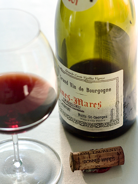 ドミニク・ローラン・ボンヌ・マール・グラン・クリュ・グラン・キュヴェ・ヴィエイユ・ヴィーニュ2001を頂きました。 エッジがブリック掛かったしっかり目のルビー・ガーネット。 熟成感を感じるジャミーな赤黒果実にアースやマッシュルーム、アニマルなどが品良く香ります。 ドライながらも甘美で少し湿ったような果実味から、生き生きとした酸味、タンニンは細かく主張していて、中間もフル・フレーバーで、少しヒートを感じる長い余韻へと続きます。だんだんと酸味が落ち着き、タンニンも果実味に溶け始めますが、個性的なスパイス感を感じます。 翌日は甘く澄んだ落ち着いた果実味で、全体的にマイルドに仕上がっており、ゆっくりと頂きました。