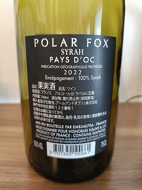 POLAR FOX SYRAH 酸味とタンニンしっかり目。