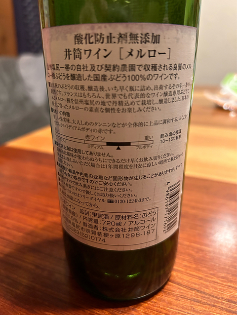 井筒ワイン 酸化防止剤無添加 メルロー