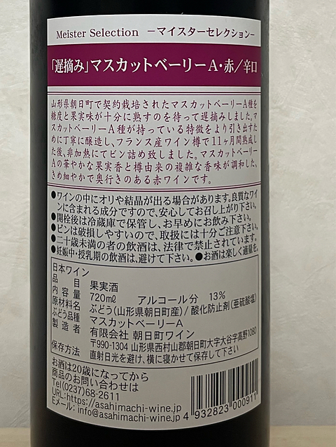 ワインAsahimachi Wine Meister Selection 遅摘みマスカットベーリーA 赤 辛口(2021)