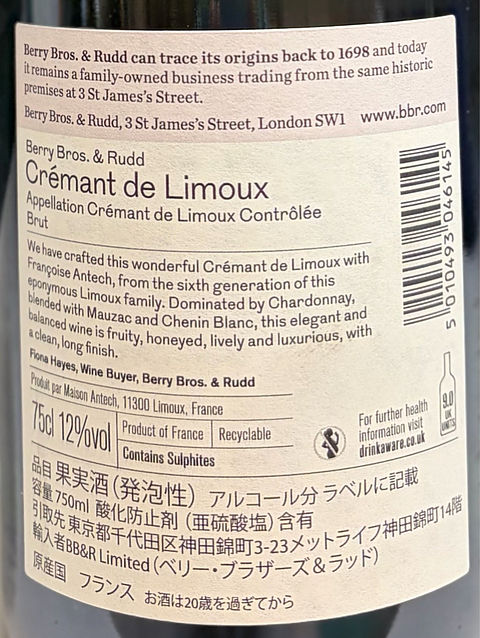 フランス産シャルドネ、シュナン・ブランでブレンドのスパークリング。税込み約¥3.3k-(暫く¥3k台キープに感謝) 残念ながらクレマン・ド・リムーは現在庫を以って終売だそうです。お気に入りで時々ストックしていたのに悔しい。泡で迷ったらコレで決め打ちのBB&Rの定番品が消え失せるのは本当に悲しい。さもされど、Vinicaのdiscontinued のお知らせは尚悲しい… 〜リピートなので前のメモより〜 安定・安心の高バランスなBerryBros.&Ruddセレクトの上品な泡に回帰しちゃう。普段使いにもってこい。常にストックしておきたいコスパ高い一品。 ◆シャルドネ【Chardonnay】 世界で最も名を知られた白ワイン用のブドウ品種はシャルドネで、「白ワインの女王」とも呼ばれる。 フランスが誇るシャルドネは、ブルゴーニュ地方とシャンパーニュ地方のものが特に有名。 ◎ブルゴーニュ地方 【シャブリ】 【コート・ド・ボーヌ】 【 マコネ】 ◎シャンパーニュ地方 「コート・デ・ブラン地区」「ブラン・ド・ブラン」(白の中の白)というラベルのついたシャンパーニュもある。 ◆シュナン・ブラン【Chenin Blanc】 シュナン・ブラン、あるいはピノー・ド・ラ・ロワールは南アフリカやフランスのロワール地方を中心に、アメリカやニュージーランドなど世界各地で栽培されている白ワイン品種。中でも南アフリカは、世界の約3分の2の生産量を占めると言われている。 酸味に富んだブドウ品種であるため、スパークリングワインに用いたり、甘口のデザートワインに仕上げてもバランスの良いものになるほか、樹勢を抑えずに栽培すれば穏やかな味わいのワインにもなる。 主に、メロンやアプリコット、花梨、蜂蜜などのアロマが特徴と言われている。 ◎クレマン Cremant フランスのスパークリングワインにおいて、シャンパーニュの次に位置づけられているのがクレマンという呼称。シャンパーニュ同様に瓶内二次発酵製法で造られ、フランス内でもわずか8つの認定地域でしか生産する事のできない銘柄。 1. クレマン・ド・ボルドー 2. クレマン・ド・ブルゴーニュ 3. クレマン・ド・ロワール 4. クレマン・ド・ディー 5. クレマン・ド・リムー※ 6. クレマン・ダルザス 7. クレマン・デュ・ジュラ 8. クレマン・ド・サヴォワ
