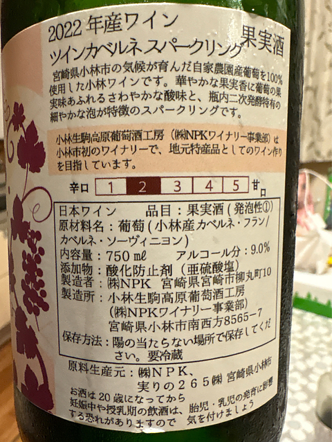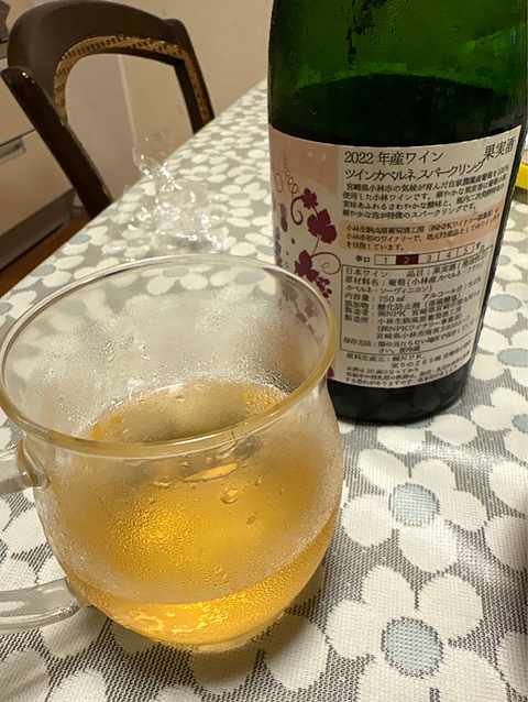 宮崎県産のワインで2番目に値段が高いワインで1本7000円近く カベルネフランとカベルネソーヴィニヨンと赤ワイン用品種を使っていましたが白のスパークリングでした