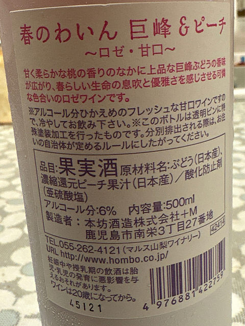 国産巨峰と桃を使ったフルーツワイン 甘口ロゼで渋味と酸味は弱い