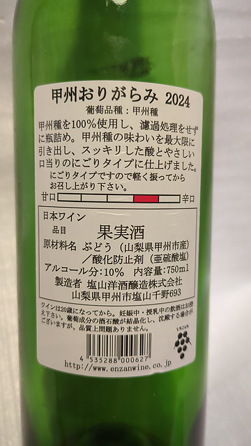 塩山洋酒醸造 甲州おりがらみ