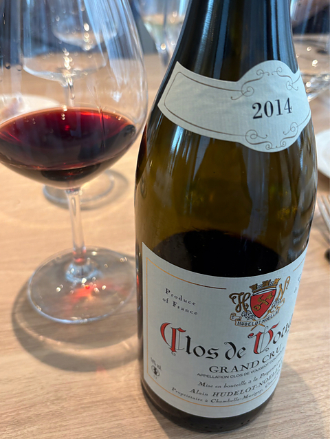 2014 アラン・ユドロ・ノエラ クロ・ド・ヴージョ グラン・クリュ コート・ド・ニュイ ブルゴーニュ/フランス vinicaに感謝✨ 9/27ワイン会@神田三崎町 divino・その5 5本目からは「赤」のターン。先ずはEikiさんご持参の、アラン・ユドロ・ノエラの「クロい奴」、世界最高のワインを生み出すブルゴーニュの中の、さらに最高の産地のひとつ、クロ・ド・ヴージョです! レビューに記すのが遅くなりましたが、この日伺ったイタリアンレストラン divinoは、Eikiさん行きつけのお店。貸し切り利用の予約など、諸々のアレンジをEikiさんにお願いしました。 こちらのレストラン、「え、こんなところに⁉︎」と驚くような、隠れ家立地の比較的小さなお店ですが、お料理もサービスも、とても洗練されたハイレベルなレストランで、私はかなり驚きました。 特にお料理は、間違いなくイタリアンのはずなんですが、エレガント過ぎて…いやいや、この日のワインの85%以上(7/8)がフランス産だったので、それに合わせてくれたからなのか、ほとんどグラン・メゾンのフランス料理のような印象。 もしかして、ワインに寄り添うよう、お料理を調整してくれたのでしょうか? 結果として、ワインとお料理のマリアージュは最高でした♡ Eikiさん、いろいろご手配ありがとうございましたm(_ _)m アラン・ユドロ・ノエラのクロ・ド・ヴージョをいただくのは、実は初めてでした。そして、このワイン、想像以上に素晴らしいワインでした。 クロ・ド・ヴージョといえば、広いエリアが相続などにより細かい区画に分割されていて、玉石混交のイメージが強いグラン・クリュですが、このワインは間違いなく「玉」、それも「珠玉」と言いたくなる素晴らしさでした。 アラン・ユドロ・ノエラのクロ・ド・ヴージョは上下に隣り合ったふたつの区画に分かれ、上部区画はクロ・ド・ヴージョ城の真横に位置する、いわゆる「教皇の区画」の一部。 上部区画は、最上部でフラジェ・エシェゾー村のグラン・エシェゾーに隣接し、ヴージョ・エリア内ではジャン-ジャック・コンフュロンとシャトー・ド・ラ・トゥールに挟まれています。 道路を跨いだ下部区画は、メオ・カミュゼとモンジャール・ミュニュレに挟まれ、最下部をドメーヌ・ベルターニャに蓋をされた区画で、素晴らしいとしか言えない立地。 実際このワイン、特に香りが素晴らしいですね♡ 抜栓の瞬間から空間を支配する圧倒的な芳香✨✨ こういう時、人は言葉を失って無口になるか、目の前の芸術について雄弁に語り合いたくなるのか、反応はふたつにひとつですが、この時は会話のスイッチが入りました。 味わいもエレガントの極み‼︎ ピノ・ノワールの洗練と深淵を具体化させたような超絶的な味わいです。 なぜクロ・ド・ヴージョがグラン・クリュなのか? これほど相応しく説得力のある回答は、他にはないかもしれません⁉︎ Eikiさん、今回の幹事としての、諸々の手配り気配り心配り、そして極上のクロ・ド・ヴージョを堪能させていただき、心から感謝します。本当にありがとうございました✨