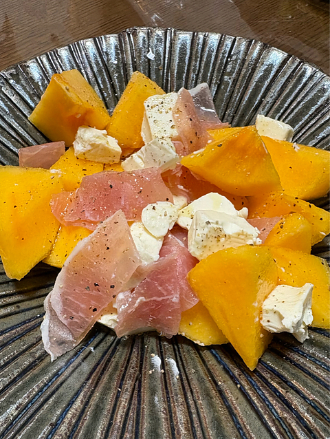 今年はぶどうの出来が良さそうなので期待していたが、フルーティさよりもアルコールがドーンと来てちょっと(^^;; 柿、生ハム、クリームチーズにオリーブオイルとハチミツと黒胡椒をかけたオツマミで。 今年はいろんなことがありすぎる!ここで一旦終了して欲しいなー