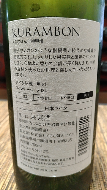 くらむぼんワイン Kurambon 樽甲州