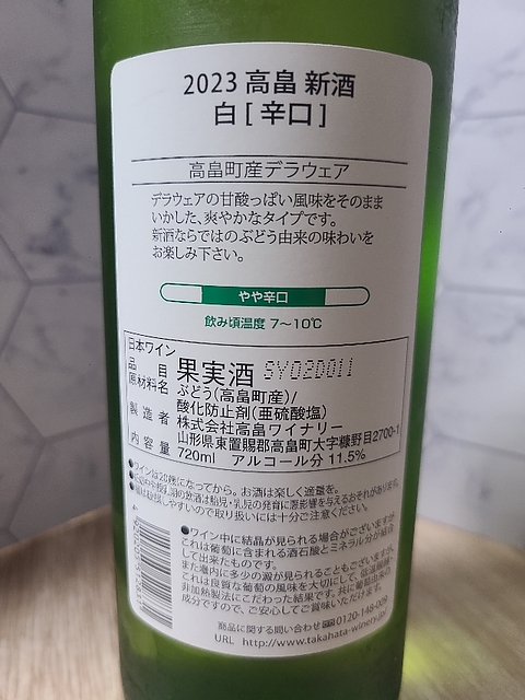 TAKAHATA WINERY 高畠 Takahata Delaware 2023 新酒 辛口