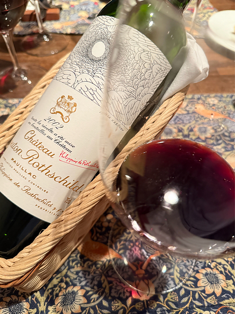 シャトー•ムートン•ロートシルト 2002 ムートン会 2/4 まずはNori81さんより、02。 とてもクリアで深いガーネットの色合い。 樽の甘さも感じそうなマイルドで若々しい香り。 フレッシュかつクリアな凝縮した液体。ヴァイオレットやスミレのニュアンスが溢れるエレガントなワイン。 あいやー、素晴らしい!02なのにこんなにまだフレッシュなのが驚き、さすがムートンでしょうか!? Nori81さん素晴らしいワインありがとうございました!