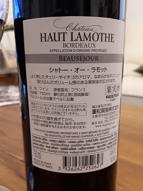 久しぶりのボルドー♪そんなに個性がないですが、ストロベリー、ブラックチェリーの香り酸味を楽しめました(^-^)v