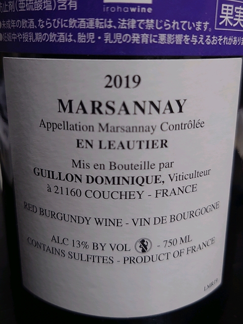 | ワイン | Dom En Leautier (Dominique Guillon Bourgogne Côte d'Or En Leautier)(2019) | ||||||||||||||||||||
