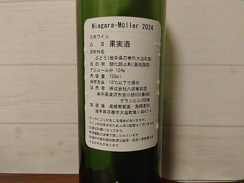 八漱葡萄酒さんのナイアガラミュラー。 以前に飲んだペティアンルージュが美味しかったし、ヒトミワイナリーのナイアガラは大好きだから、楽しみにしていた。 辛口のナイアガラは良いのだけれど、何だか味に特徴がなく、ぼやけるような感じの味わいで、あまり好みではなかった。残念。