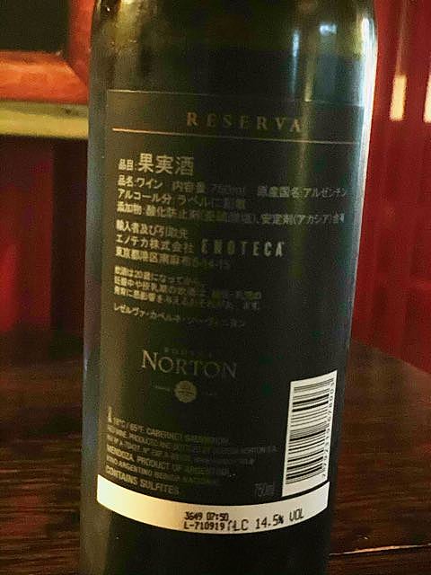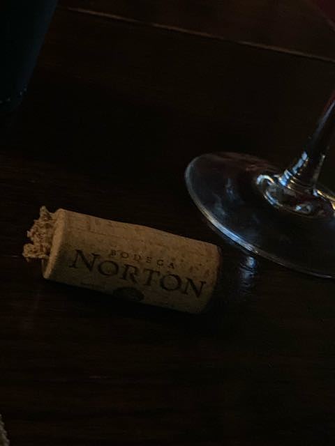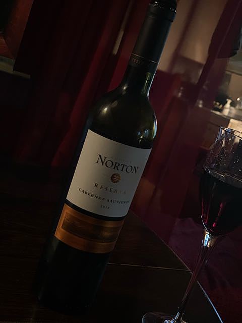 休みの日の夕方。 初アルゼンチンワイン。 「ノートン」? バイクを思い返してしまう。