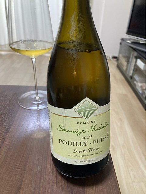 ソメーズ・ミシュランのプイィ・フュイッセ・シュール・ラ・ロッシュ2019。ブドウはプイィ・フュイッセのヴェルジッソン村にある村名(今は1級)区画シュール・ラ・ロッシュのシャルドネ100%。樹齢は50-70年、土壌は石灰質、ビオデナミで栽培。味わいは思ったより濃度があり、果実味が全面に出ている状態。期待していたミネラルはあまり感じられません。2日目になると果実味は減少し、ミネラルがしっかり感じられるようになってました。開けるのが少し早かったのかもしれません。夕食の塩で下処理した本鮪の赤身のお刺身(しょうゆ、わさび)に合わせるとミネラルを感じてすごくおいしかったです。水分が抜けて味が凝縮したのと残った塩気にワインが反応したのかもしれません。温度的にはしっかり冷やしたほうが良いと思います。