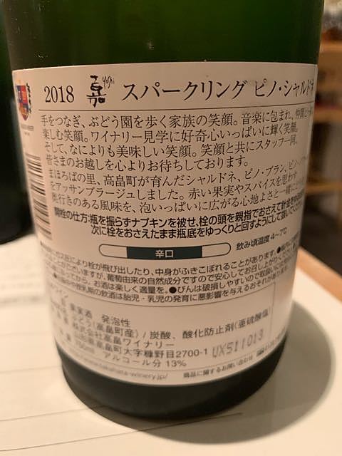 TAKAHATA WINERY 嘉 Yoshi Sparkling Pinot 'n' Chardonnay Brut 2018