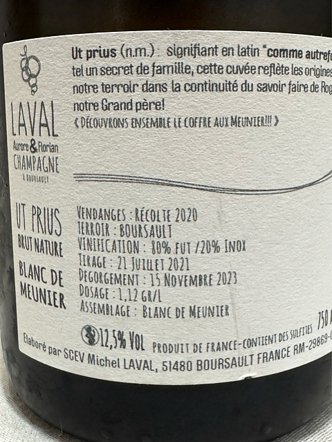 本日の一本 シャンパーニュ オーロール エ フロリアン ラヴァル ユト プリウス 2020 10月23日 キノコのクリームソースとチキン 美味しいブランドムニエ