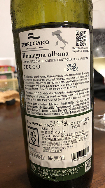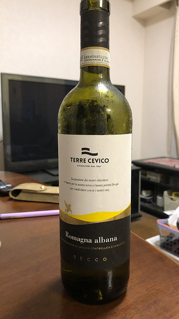 前も飲みました。イタリアはエミリア・ロマーニャ州のロマーニャ・アルバーナ。柑橘の香りとしっかりした酸味が残暑に合います。