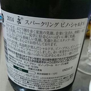 TAKAHATA WINE 嘉 Yoshi Sparkling Pinot 'n' Chardonnay Brut 2014