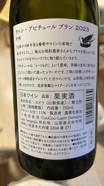 ホールバンチプレス、樽発酵。フレッシュで青々しく清々しい香り。グレープフルーツとパイナップル、少し塩味と酢酸。少し締まりがないが魚介と合いそう。