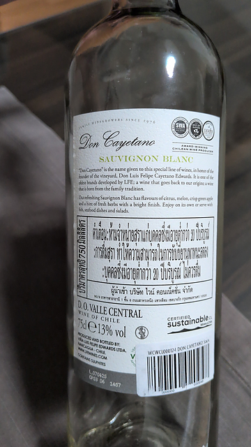 チリ セントラル・ヴァレー ソーヴィニヨン・ブラン 2024年 THB550 ちょっと薄いかなぁーって気はしますが、ちゃんとSBしてて美味しく頂きました! チリの白は南アの白と同じようにコスパが良くてハズレが少ないように感じます(^ ^)