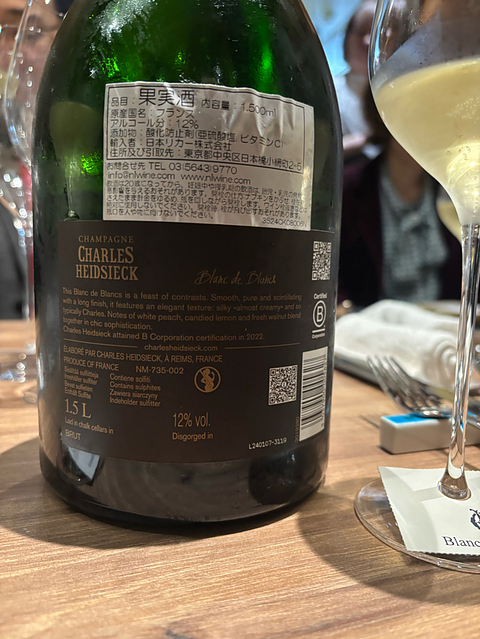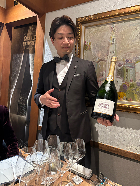 シャルル・エドシックメーカーズディナー 最初はマグナムのブランドブラン ちょっと甘めです。 今までとは違う感じのシャンパーニュ 美味しい