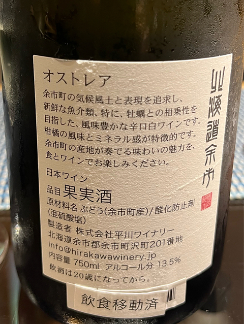 平川ワイナリーのオストレア 2024 日本、北海道 角打ち2杯目は平川さんの白です(^^) 品種は分からないのですが、さっぱりとした味わいでした♫