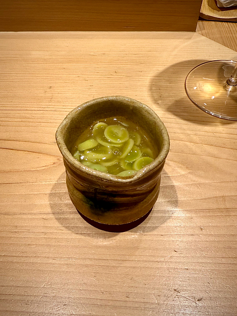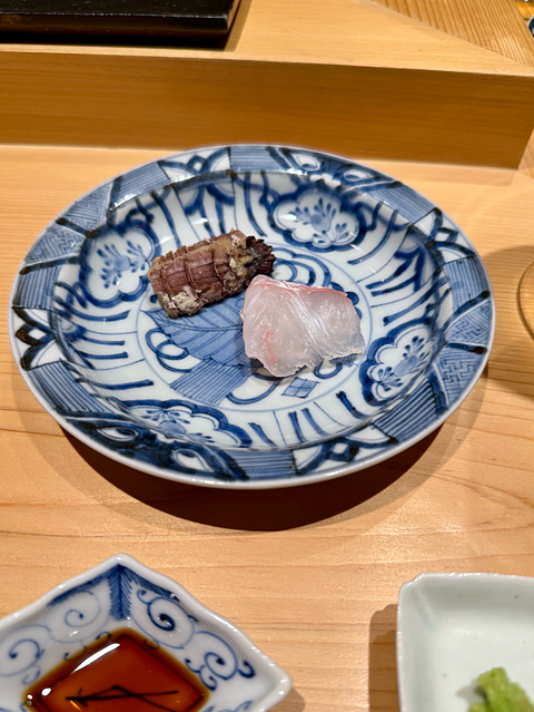 新富町のお鮨屋さんへお持ち込み。 ドメーヌ・ルーロ・ムルソー・ヴィレイユ2012を頂きました。 結構濃い目の黄金色。 ナッツのブランデー、少しオークにイエロー・フルーツ、ミネラルですが、少し進んでいる感じのアロマ。 ふくよかなテクスチャーで、フレッシュ感の果実味が少し下降気味、酸味は少し強めで、甘く溶けるライム・ストーンのエンディング。時間の経過で果実味の甘みがぐんぐん上がり、酸味も落ち着いて来て、それなりにまとまり感が出てきましたが、まあこういうボトルだったと言う事でもそれなりにい楽しんで頂きました。 初めて頂いた日本酒「早瀬浦」はとても美味しかったです。