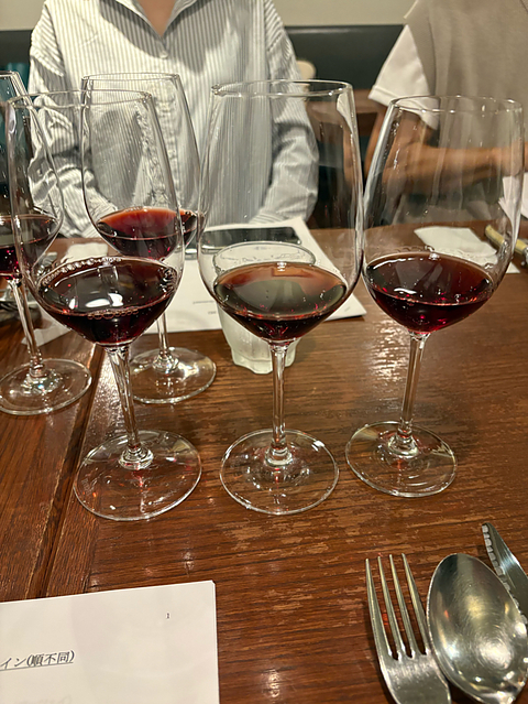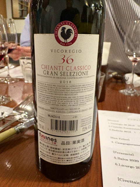 2018 マッツェイ(カステッロ・ディ・フォンテルトリ) ヴィコレジオ 36 キャンティ・クラッシコ・グラン・セレツィオーネ トスカーナ/イタリア vinicaに感謝✨ 10/2サンジョヴェーゼ会@西荻 ダ・マサ・その1 いつも変態ワインを持ち寄る「ワイン変質者の会」(命名:DaMasaさん)から発展したワイン会。 今回は、原則ワインの持ち込みはなしで、ワインはすべてマサさんのセレクト。サンジョヴェーゼの神髄に触れようという、正統派(?)の企画です。 最初のフライトは、マッツェイ/Mazzei家(屋号がカステッロ・ディ・フォンテルトリ)という同一のつくり手による、3種類のキャンティ・クラッシコ・グラン・セレツィオーネ(CCGS)の飲み比べ。 同一年に収穫されたぶどうを、だいたい同じ(?)醸造スタイルによって同一カテゴリー(=CCGS)に仕立て、リリース後もほぼ同一条件で管理されたワインの比較になります。 飲み比べて分かる(はず…)のは、ぶどうそのものの属性(樹齢やクローンの種類)や、畑の地勢(土壌や向き、斜度、標高など)と、それに付随するミクロクリマ(微気候)など、フランス語でテロワー?ル/terroirと呼ばれる、それぞれの畑の「個性」の違いです。 やる気さえあれば、いつでもできそうな気もしますが、実際にはなかなかできないマニアックな比較テイスティングだと思います。 このフライトで、特にマサさんが着目していたのは標高でした。3種類のCCGSのテイスティングの順番は低→高で、最初のワイン、「ヴィコレジオ36」は、平均標高350mに位置する自社畑「ヴィコレジオ」からのワイン。 カステルヌオーヴォ・ベラルデンガに位置するヴィコレジオは、南東、南向きの斜面に広がる、アルベレーゼ(石灰岩と粘土)の土壌で、平均樹齢18年のぶどうが栽培されているそうです。 そして、この畑には自社の畑から選抜された18種類のマサル・セレクションを含む、「36種類の異なるサンジョヴェーゼのバイオタイプ」が植えられているとか……⁉︎ 詳しいことはよくわかりませんが(苦笑)、ワイン名にある「36」もここから取られたようで、多様性の極致のような畑ということですね? ちなみに、アルコール度数は13.5%と、3本の中でいちばん低い度数になっています。 目の前に並んだ3種類のCCGSは、微妙な濃度差はありますが、基本的に、やや明るめで透明感のあるラズベリーレッドの外観。 強いていえば、3番目の「バディオラ」がやや濃いめかなぁ?という程度の違いで、ぱっと見区別がつかない感じです。 香りは、トップノートに赤〜紫のゴージャスな花が咲き、溌剌とした赤果実や熟した黒果実、芳しいスパイスの香りは、そのお花畑を越え、時間差でやって来ます。 とてもよく香るワインですね♡ 口に含むと、少しあっさりした感じですが、キレのある酸と果実の旨み、サンジョヴェーゼらしいザラザラしたテクスチャのタンニンが「らしさ」を感じさせる味わい。 全体の印象としては、「花の香り」に最大の特徴を感じましたが、後口に残る、上質な「キャラメルの芯」のようなザラっとした甘さと質感も堪らないですね♡ このワインを漢字二文字で表すなら、「華麗」とか「溌剌」など、躍動感のある言葉をあてたいですね♪ 美味しいサンジョヴェーゼでした✨