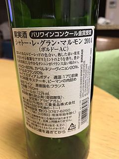 フランスボルドーのシャトー・レ・グラン・マルモン メルロ60%・カベルネソーヴィニヨン20%・カベルネフラン20%です。生協で注文したワインにしてはブオーノ