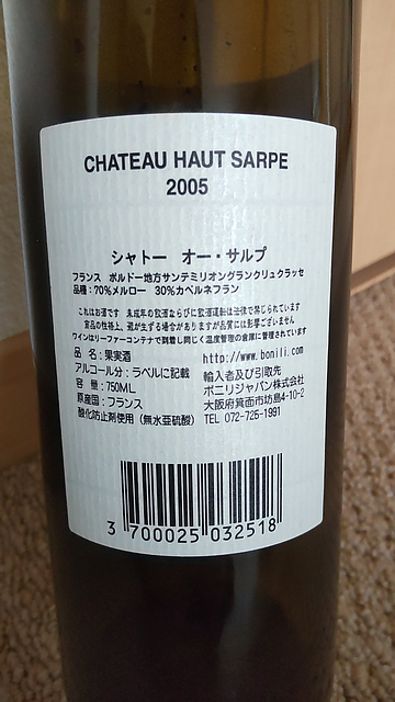 サン・テミリオン メルロー70%、カベフラ30% 2005年 果実味はキレイに枯れてて紅茶っぽさが出てる シナモンやリコリスも 酸とのバランス良くエレガント キノコの旨味と土っぽさが広がるミドル タンニンも落ち着いていてほんのり甘やかに しっとり落ち着いた甘酸渋バランスを保ったままドライでスパイシーな余韻へ エレガントですね〜 でもちょっと物足りなさも感じちゃうかも。。 アーシーさから熟成ボルドーの良き部分を出しつつも、ちょっとコンサバ?大人しい?感じがします。 少し前に飲んだバッドボーイ2009の方が個人的には好きかなー
