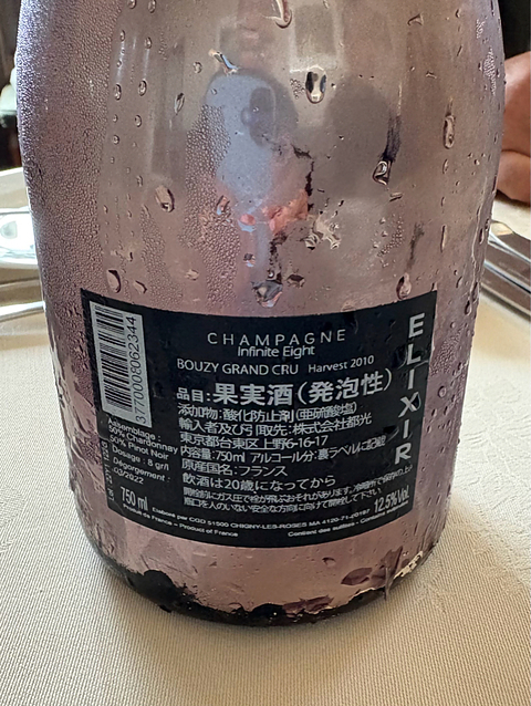 2010 インフィニット・エイト エリクシール ブージィ グラン・クリュ ミレジメ2010 モンターニュ・ド・ランス シャンパーニュ/フランス #vinicaに感謝 10/18フェアウェル ワイン会@長岡・アンジェ・その1 会の詳しい説明は省略。1本目、乾杯の泡は、ゆーも&hiroさんご夫妻から。 フレッシュで香ばしい風味で、初っ端から気分が上がります⤴︎ vinica終了に合わせて、「インフィニット/♾️ 無限大」という名前のつくり手さんをチョイスするなんて、素晴らし過ぎるセンスです♡ 加えて、「エリクシール/Elixir」は、ヨーロッパ中世の錬金術師が追い求めた不老不死の秘薬。 ゆーもさんの「vinica愛」、しかと受け止めました! 参加者一同のvinicaへの感謝の気持ちも合わせて、楽しいワイン会が始まりました✨ ちなみに、こちらのシャンパーニュは、ピノ・ノワール50%&シャルドネ50%という品種構成のNMシャンパーニュで、生産年に2年の違いはありますが、ヴィンテージ・シャンパーニュという属性も、次にいただくボワゼルと同じ。 さあ、楽しい飲み比べが待っていますよ(笑)