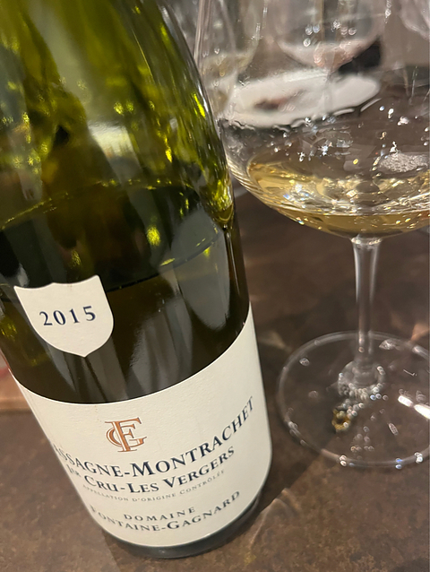 CHASSAGNE MONTRACHET VERGERS 2015 FONTAINE GAGNARD バタースコッチキャンディ、黄色い花、熟した黄色いストーンフルーツ。 程よい酸味と甘さ。 イチジクとアーモンドのクリームパスタとピッタリ合った!