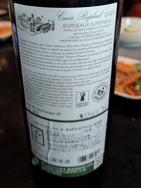ワインCh. de Parenchère Cuvée Raphaël(2020)