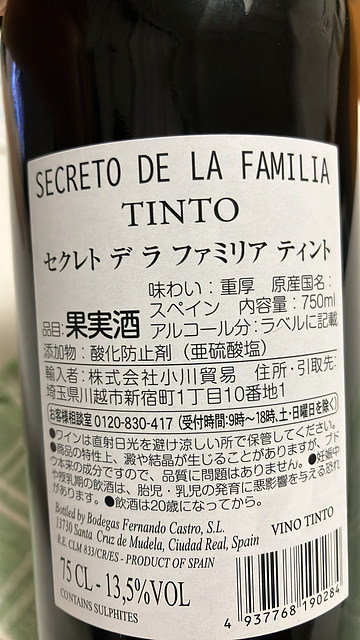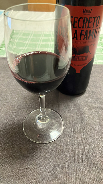 濃い紫色、グラスの向こうが見通せないくらい。粘性強めのALC.13.5%、ブルーベリー、カシス、プルーン、ブラックペッパーの香り。タンニンの渋みと酸味しっかり、うっすら黒いベリー系果実の甘みもあるような。ヴィンテージ記載がなく熟成期間もわからないが、¥598とは思えない熟成感と深みを感じる。でもそれ程複雑さは感じないので千円台中盤の安旨ワインといった感じ。でも約¥600だから結構お得。肉でも魚でも合わせられそうなミディアムボディの使いやすいデイリーワインという印象