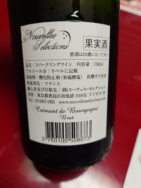 クレマン・ド・ブルゴーニュの天地人。 初めて見ました、こんなのあったんですね。 レモンイエローの色調、細やかな泡。 青リンゴ、リンゴにグレープフルーツのような柑橘、石灰、ほのかにパンドゥミ。 口に含むとクレマンらしい優しさを感じるクリスプな泡が弾け、ほのかに甘さが感じられつつもドライな味わい。酸は爽やかにあります。 シャンパーニュとは異なりますが、なかなか美味しいです。