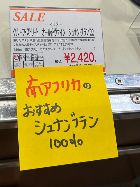 マリヌーのクルーフ・ストリート・オールド・ヴァイン・シュナン・ブラン 2022 南アフリカ、ウエスタンケープ シュナン・ブラン やや濃いめの黄色。熟した洋梨、花の蜜、アルコール、ほんのりハーブ、濡れた石の香り。円やかな果実味、しっかりした酸味、ほんのりした塩気のミネラル感。 飲んで見たったマリヌーのワインを見つけたので購入し開けてみました(^^) 10/10にローヌブレンドの赤を飲んで美味しかったですが、こちらの白も美味しかったです(*^^*) 赤白共にリピートしたいと思いました♫ ワインと合わせたのではありませんが、栗の季節なのでモンブランを食べました(笑)